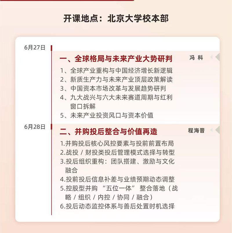 北京大学未来产业资本与并购企业家研修班(第1期)
